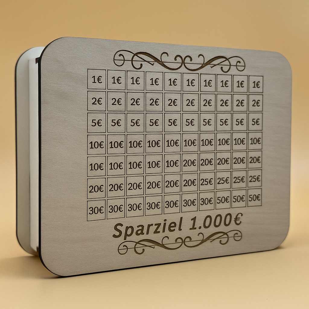 Die Spardose wird aus hochwertigem Sperrholz gefertigt. Damit ist diese nicht nur ein optisch sehr Anschaulich, sondern auch stabil um dein gespartes Geld sicher aufzubewahren!
